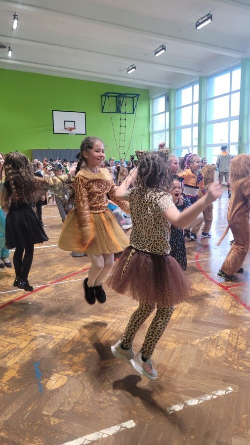 Bal dostarczył uczniom wielu radosnych wrażeń. Kolorowe stroje, muzyka i zabawy prowadzone przez animatorów stworzyły wyjątkową, pełną energii atmosferę. Uczestnicy chętnie brali udział w tańcach i zabawach, a uśmiechy nie znikały z twarzy przez cały czas trwania wydarzenia. Bal był doskonałą okazją do wspólnej zabawy i integracji społeczności szkolnej.