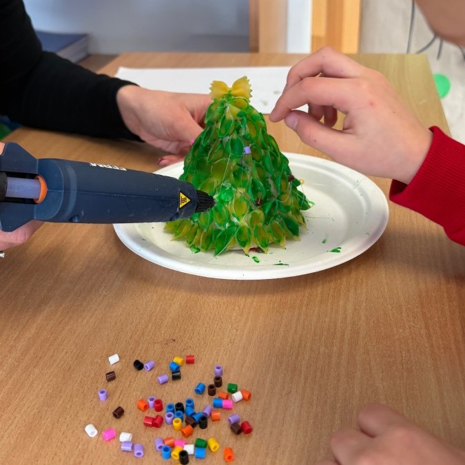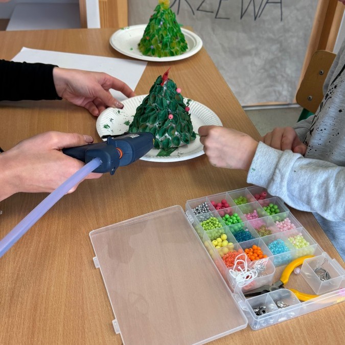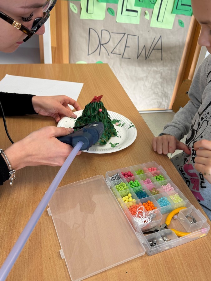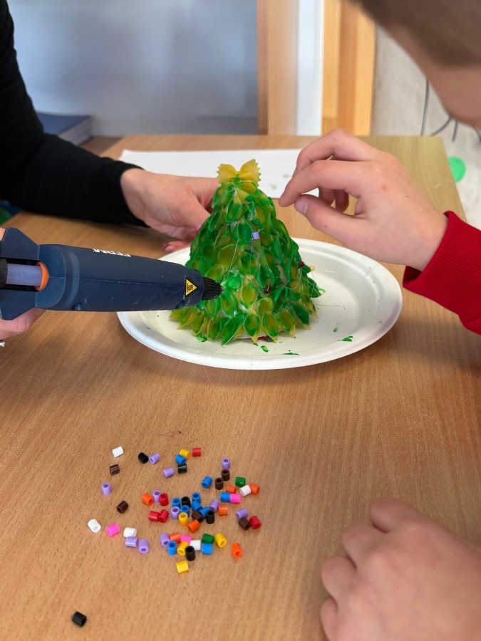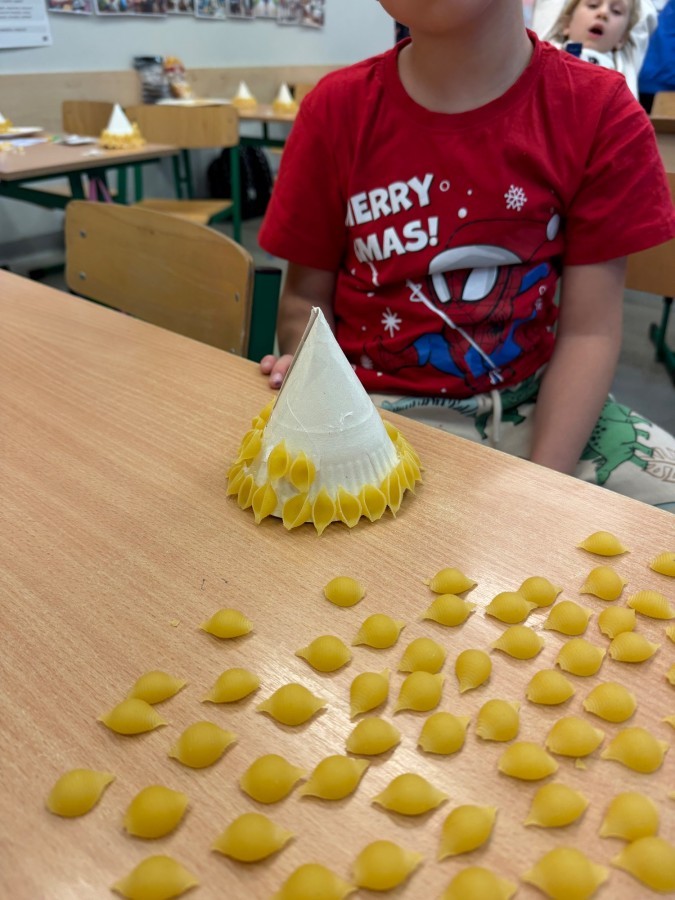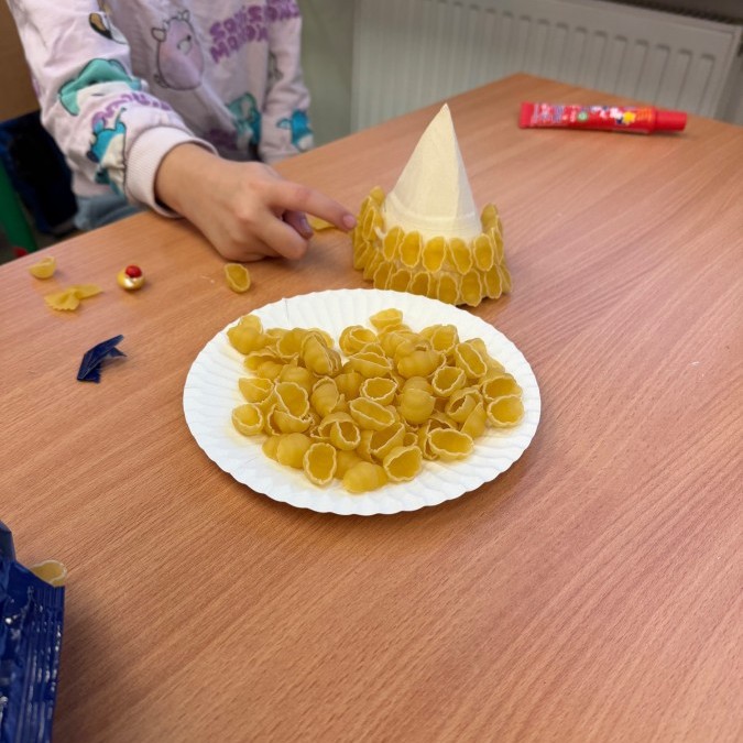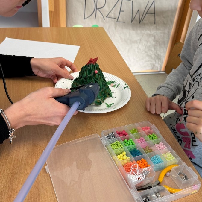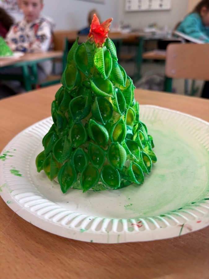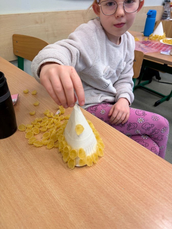 Tym razem w ich rękach zwykły makaron zamienił się w piękne, kolorowe choinki, które zachwycają pomysłowością i starannym wykonaniem. Dzieci pracowały z wielkim zapałem, ucząc się współpracy, cierpliwości oraz rozwijając swoje zdolności manualne.
