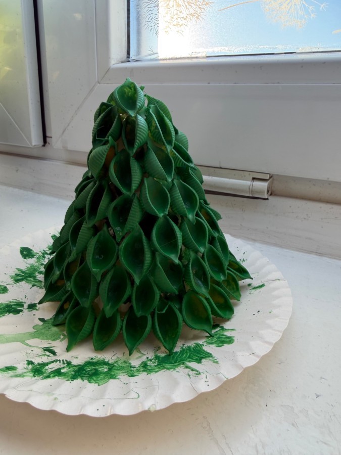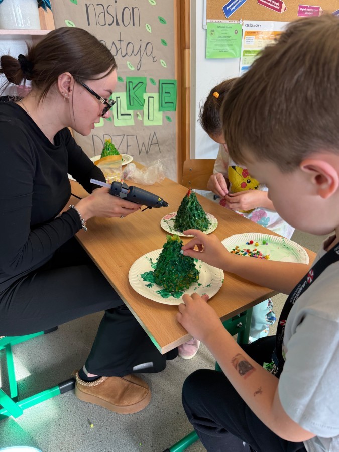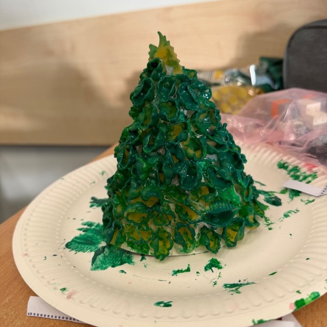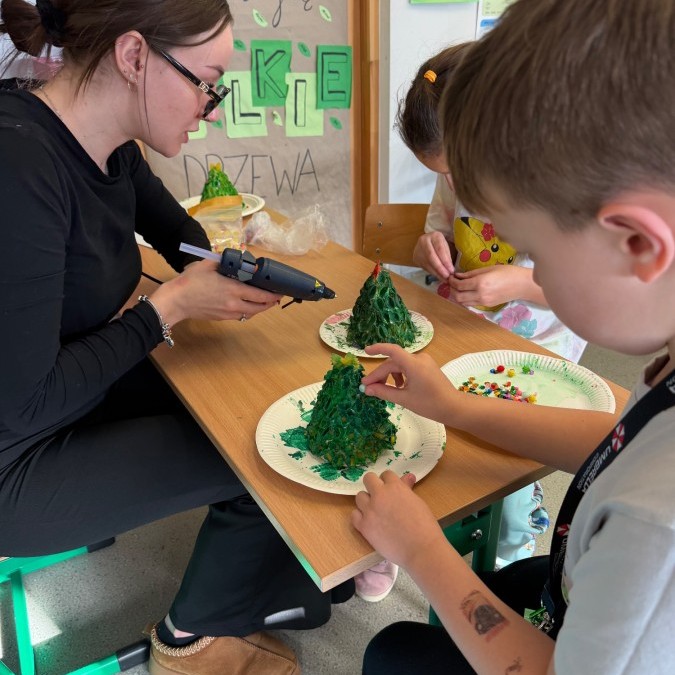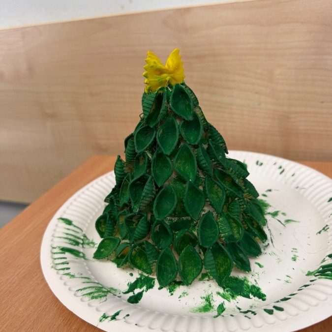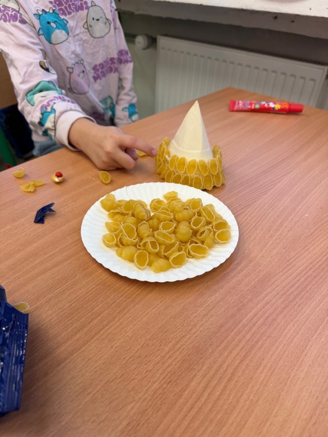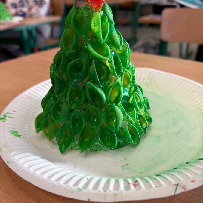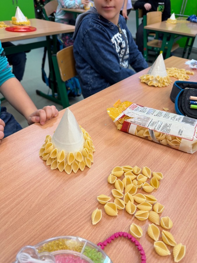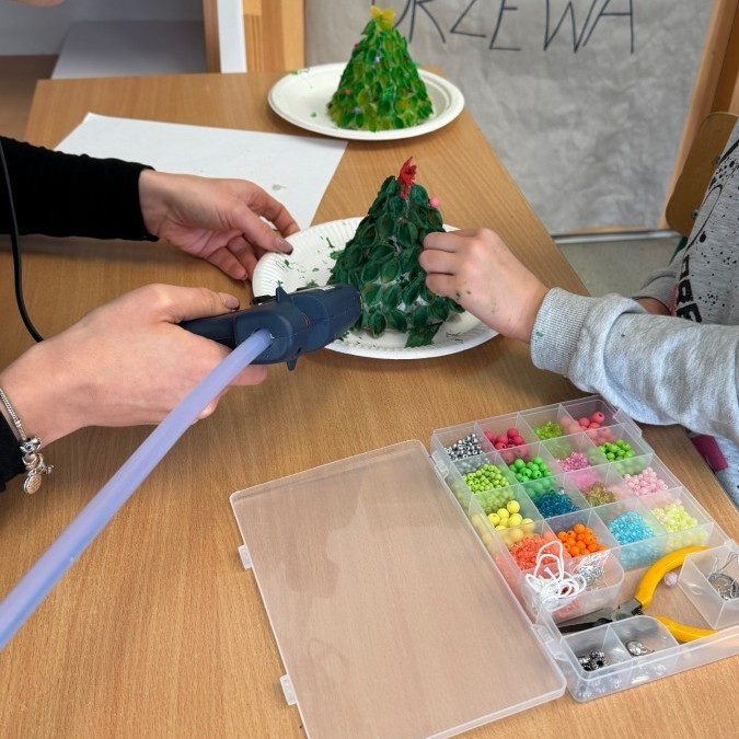 Tym razem w ich rękach zwykły makaron zamienił się w piękne, kolorowe choinki, które zachwycają pomysłowością i starannym wykonaniem. Dzieci pracowały z wielkim zapałem, ucząc się współpracy, cierpliwości oraz rozwijając swoje zdolności manualne.