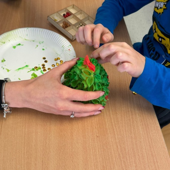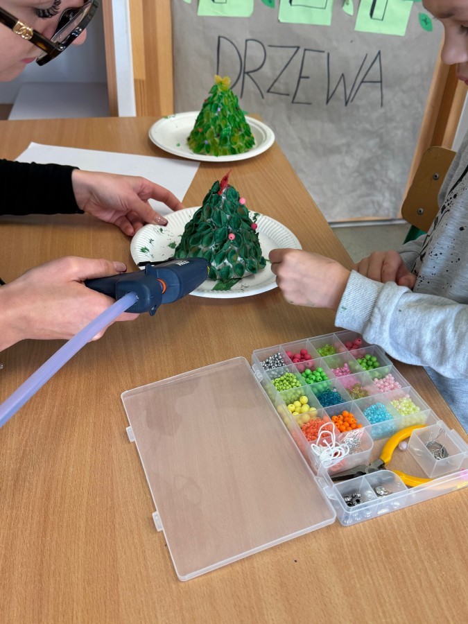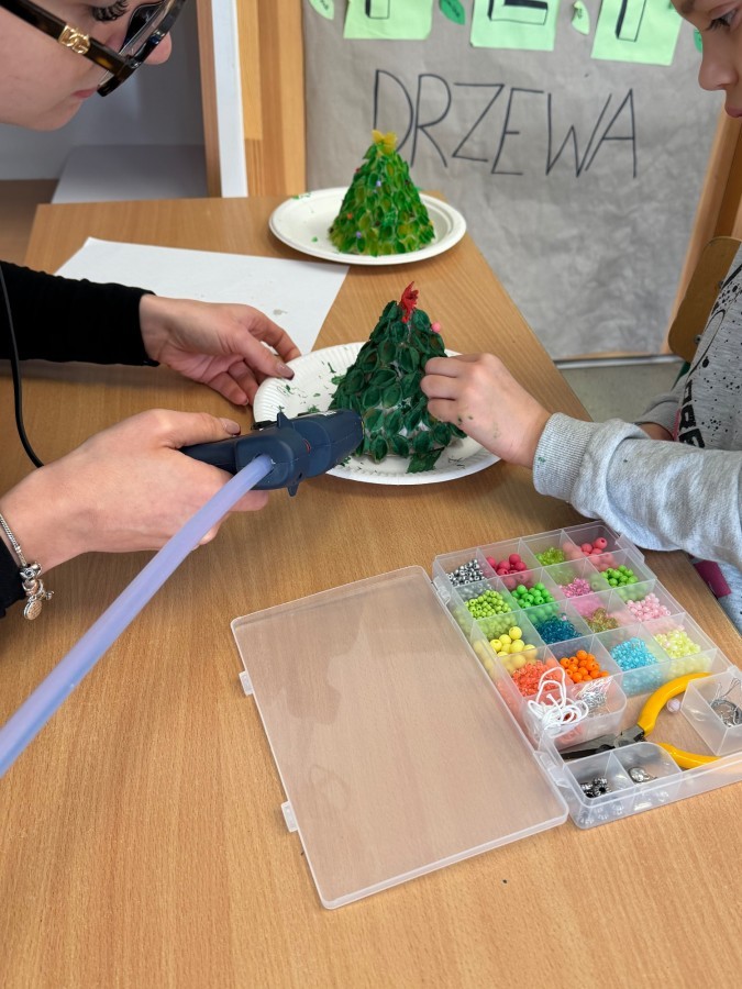 Uczniowie klasy 2B z ogromnym zaangażowaniem i radością przygotowali wyjątkowe ozdoby na szkolny kiermasz świąteczny. 🎄✨