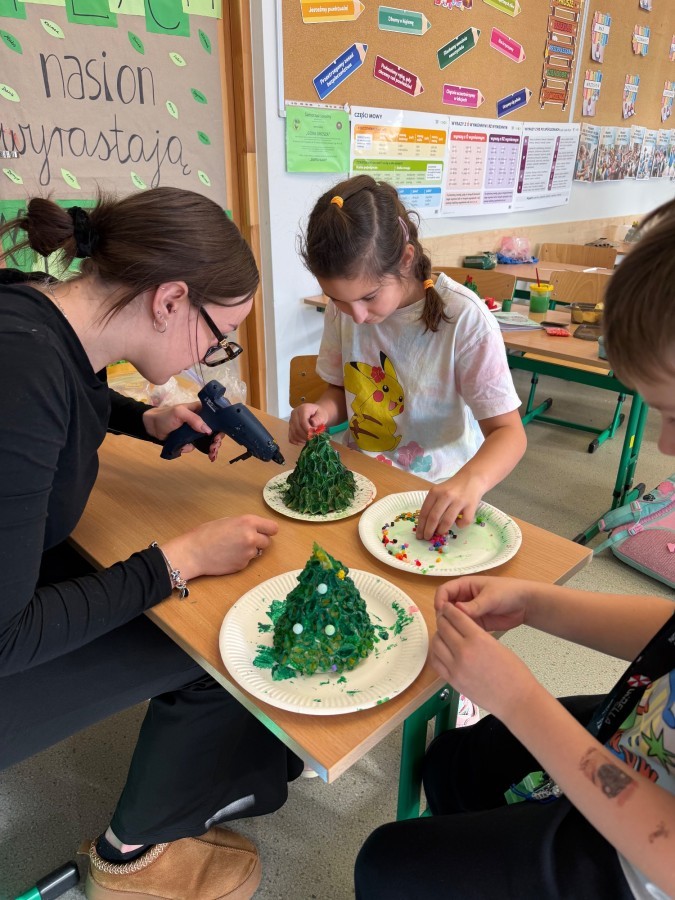 Efekt ich pracy to nie tylko świąteczne dekoracje, ale także piękne wspomnienia wspólnie spędzonego czasu. Brawo dla całej klasy 2B za kreatywność i serce włożone w przygotowanie ozdób!