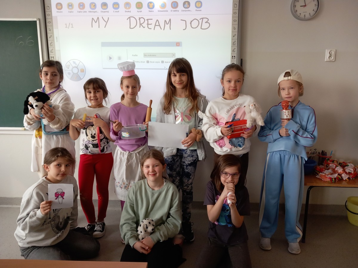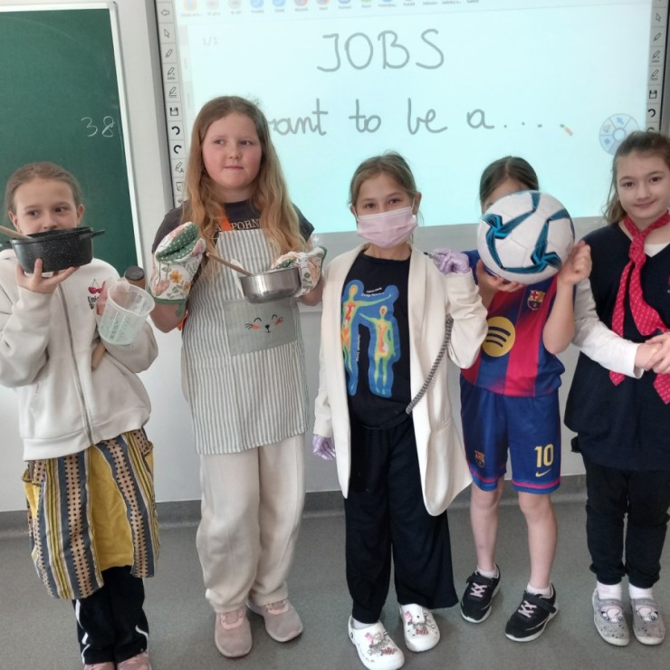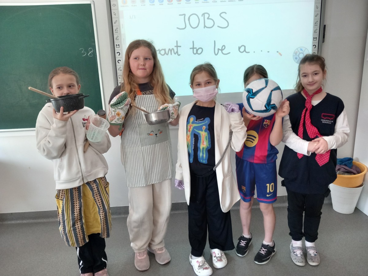 Dzień Zawodów „Jobs Day” był wyjątkowym projektem zrealizowanym w naszej szkole. Uczniowie klas 3 wcielili się w przedstawicieli różnych profesji, przygotowując ciekawe stroje oraz rekwizyty związane z wybranym zawodem. Wydarzenie odbyło się podczas lekcji języka angielskiego. Każdy uczeń miał okazję zaprezentować swoją rolę, opisując wykonywany zawód w języku angielskim. Była to nie tylko świetna zabawa, ale także doskonała okazja do rozwijania umiejętności językowych i poznawania różnych ścieżek kariery.
