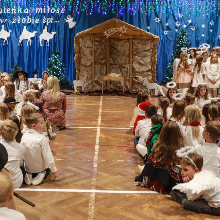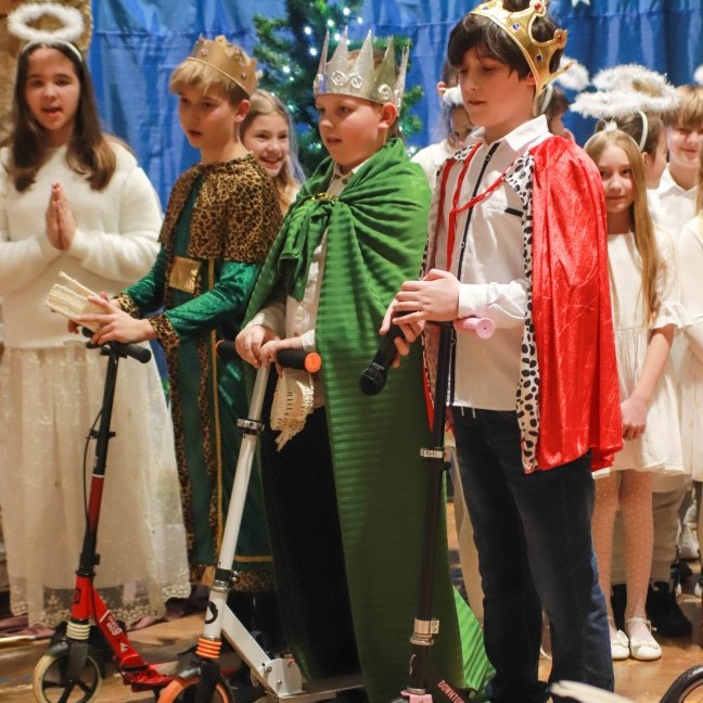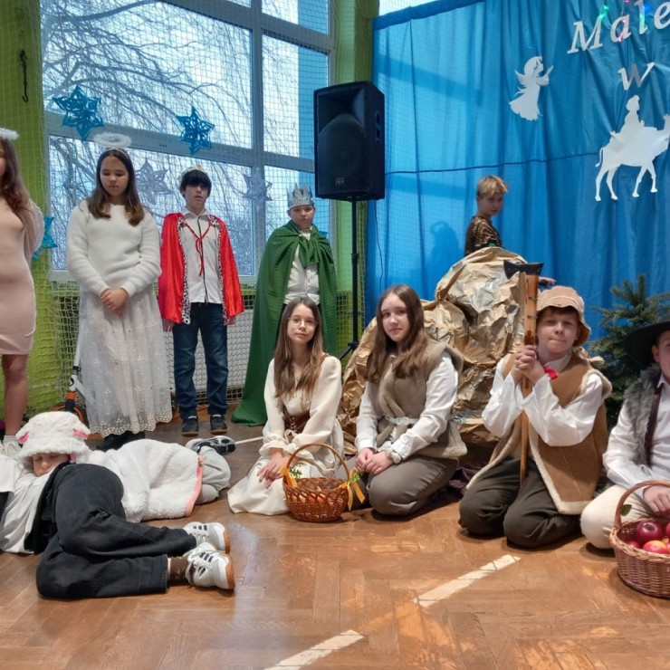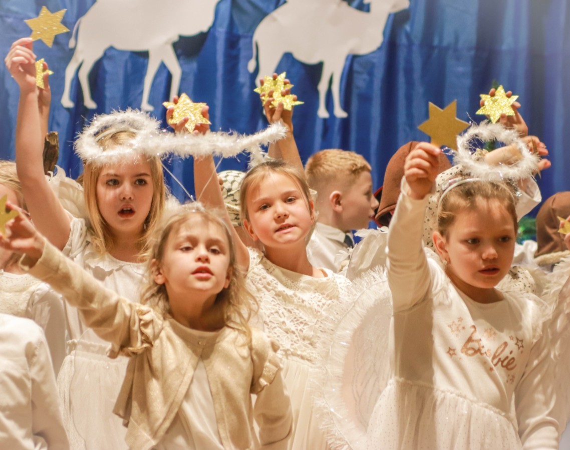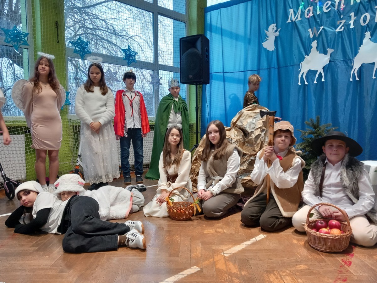 16 grudnia 2025r. w naszej szkole odbyło się wzruszające spotkanie świąteczne, które połączyło tradycyjne Jasełka oraz uroczyste Kolędowanie klas.