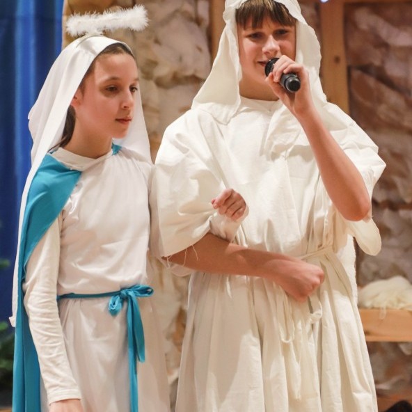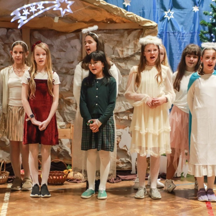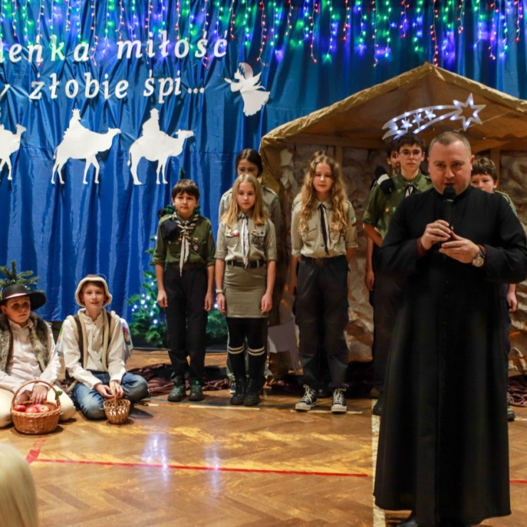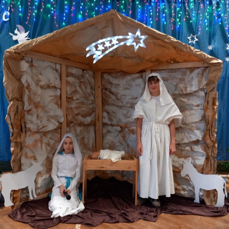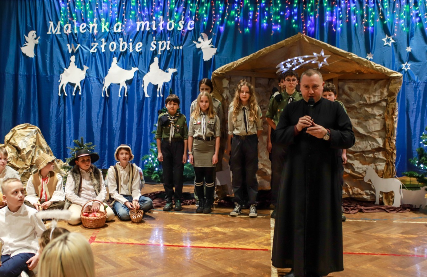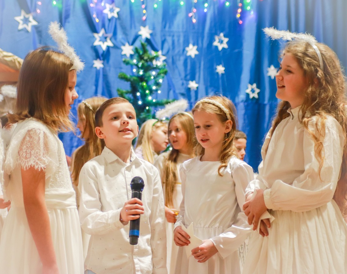 16 grudnia 2025r. w naszej szkole odbyło się wzruszające spotkanie świąteczne, które połączyło tradycyjne Jasełka oraz uroczyste Kolędowanie klas.