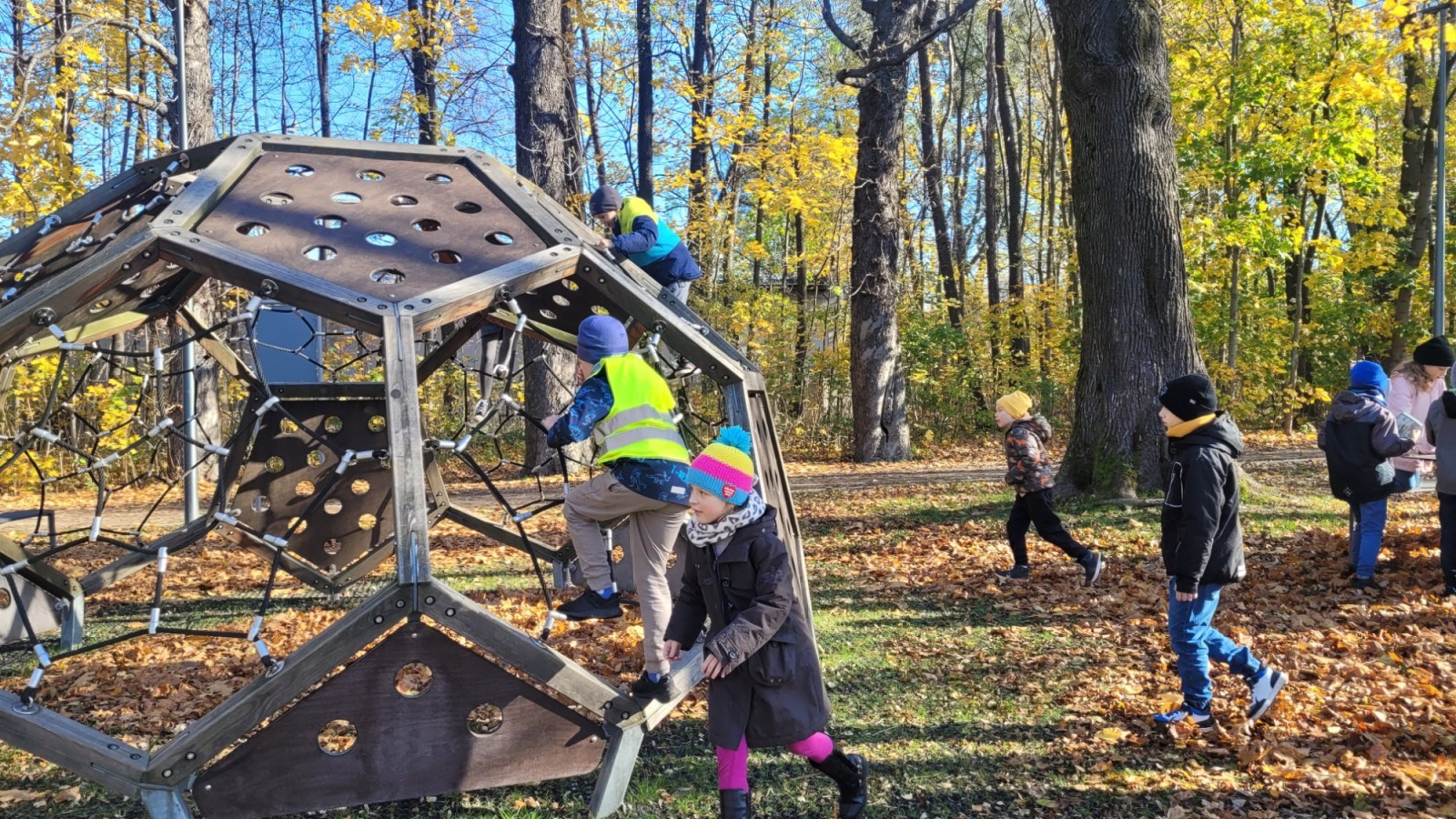 O tym, że jesień jest piękna nie trzeba nikogo przekonywać. Uczniowie klasy 2d też mieli okazję zachwycić się jej urokami spacerując po Bulwarach w Straconce i poznając ścieżkę dydaktyczną w Parku Strzygowskiego. Piękna pogoda, złociste liście na drzewach, ciekawostki przyrodnicze, tablice z informacjami o czasie, w jakim rozkładają się niektóre odpady w przyrodzie oraz o właściwej segregacji odpadów to tylko kilka z punktów, jakie realizowaliśmy w czasie tej wyprawy. A kiedy już nasycyliśmy się wiedzą i pięknem przyrody można było pobawić się na ściance wspinaczkowej i konstrukcjach rekreacyjnych.