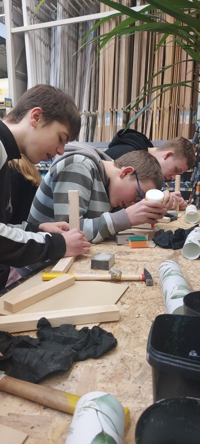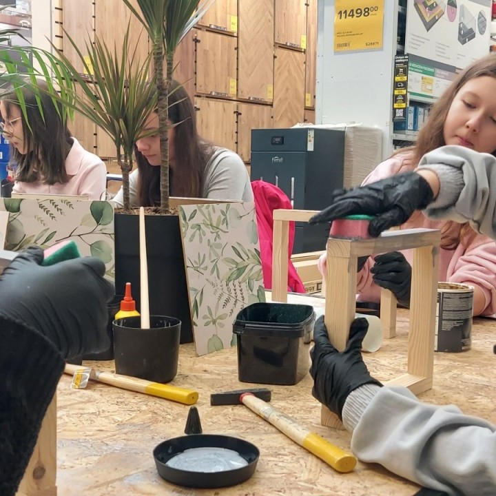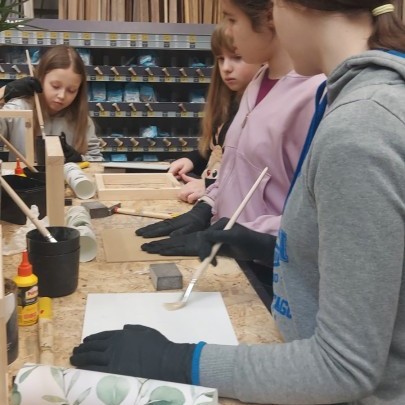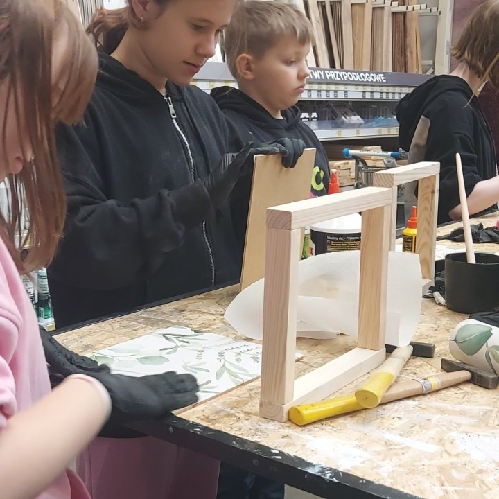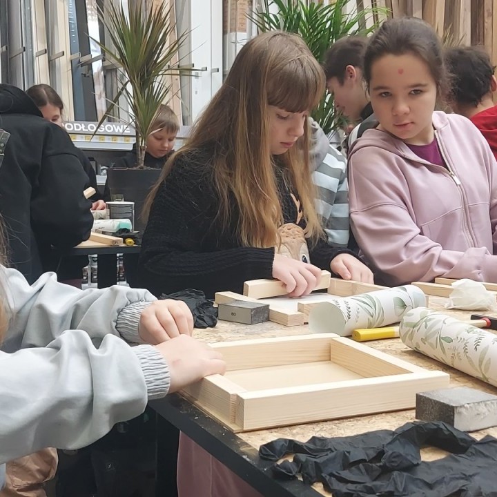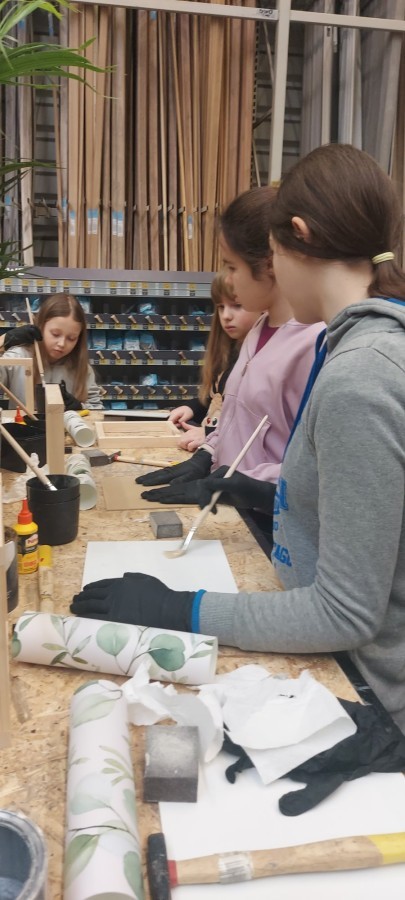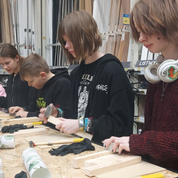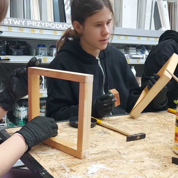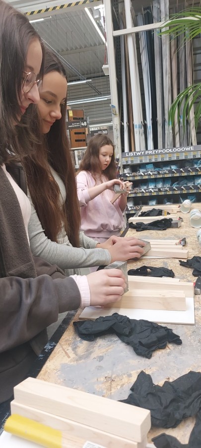 17 stycznia 2026 r. uczniowie Szkolnego Koła PTTK wzięli udział w kreatywnych warsztatach w Castoramie, gdzie pod okiem specjalisty poznawali tajniki pracy rzemieślniczej. Głównym zadaniem było samodzielne wykonanie dekoracyjnego obrazu, co wymagało przejścia przez wszystkie etapy profesjonalnej obróbki drewna: szlifowanie, klejenie i tapetowanie, malowanie oraz montaż. Zajęcia były niezwykle ciekawe i dostarczyły uczestnikom mnóstwo satysfakcji. Każdy wrócił do domu z własnoręcznie wykonanym dziełem oraz nowym bagażem praktycznych umiejętności. To była świetna lekcja cierpliwości, precyzji i kreatywności! 😊