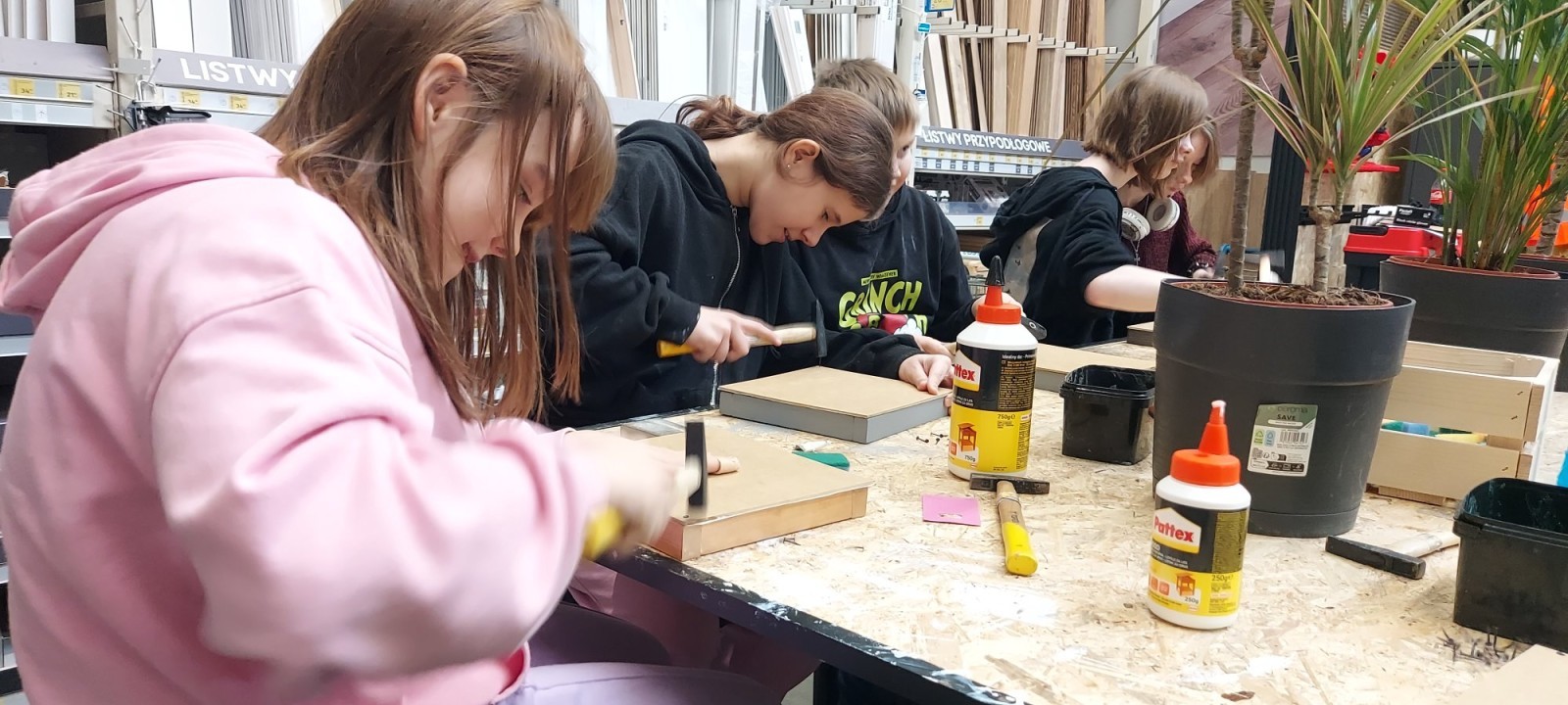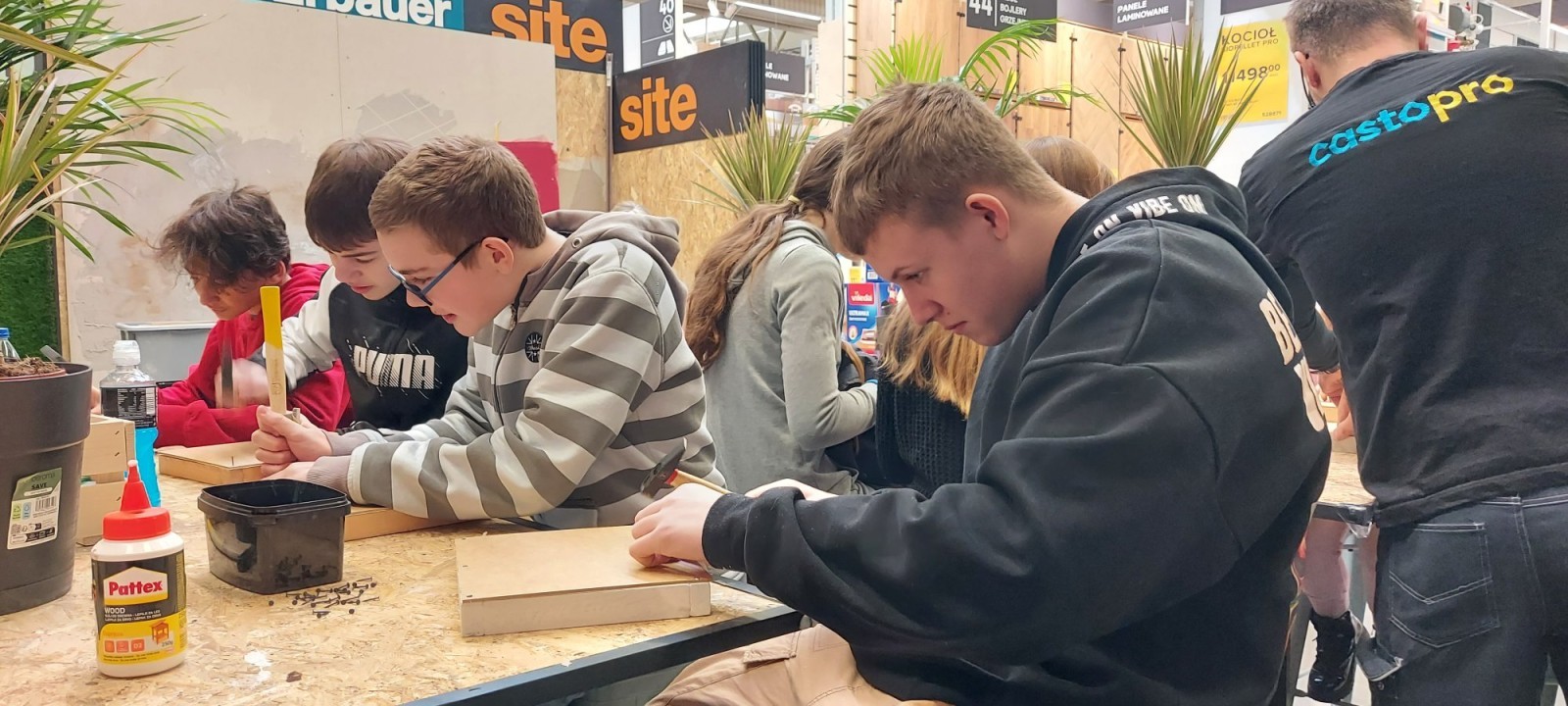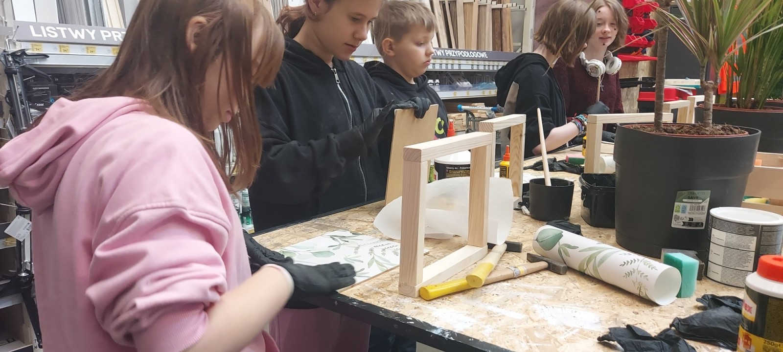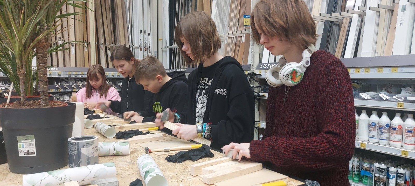 17 stycznia 2026 r. uczniowie Szkolnego Koła PTTK wzięli udział w kreatywnych warsztatach w Castoramie, gdzie pod okiem specjalisty poznawali tajniki pracy rzemieślniczej. Głównym zadaniem było samodzielne wykonanie dekoracyjnego obrazu, co wymagało przejścia przez wszystkie etapy profesjonalnej obróbki drewna: szlifowanie, klejenie i tapetowanie, malowanie oraz montaż. Zajęcia były niezwykle ciekawe i dostarczyły uczestnikom mnóstwo satysfakcji. Każdy wrócił do domu z własnoręcznie wykonanym dziełem oraz nowym bagażem praktycznych umiejętności. To była świetna lekcja cierpliwości, precyzji i kreatywności! 😊