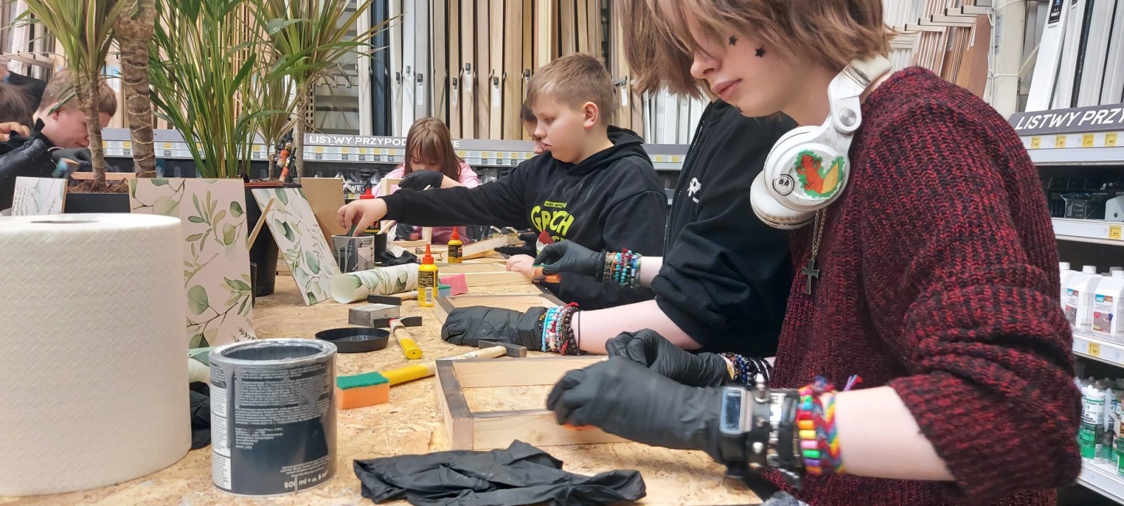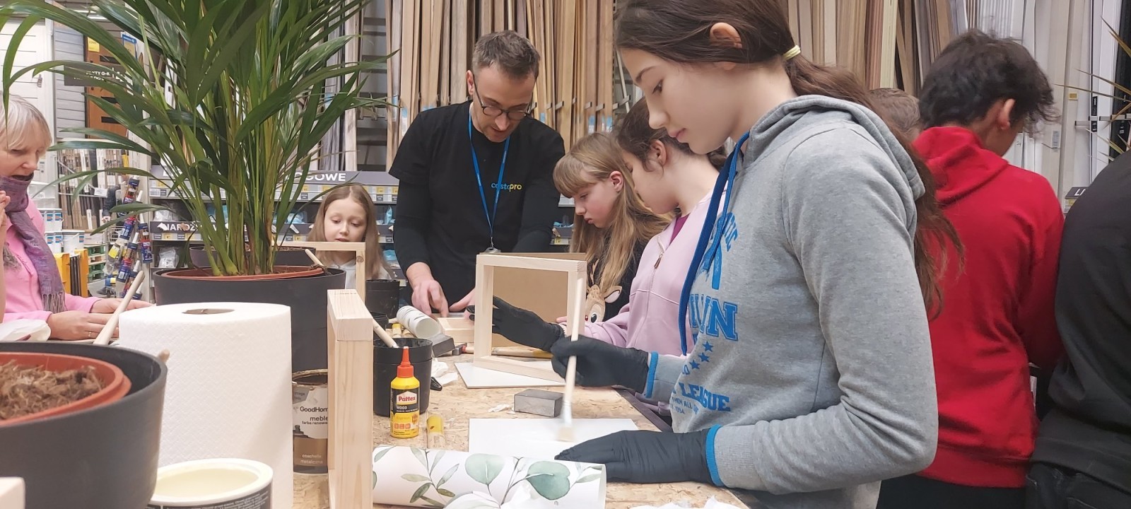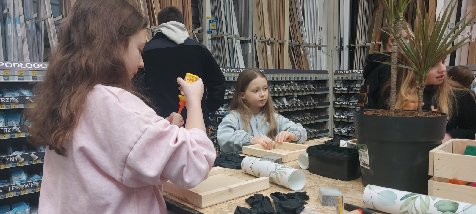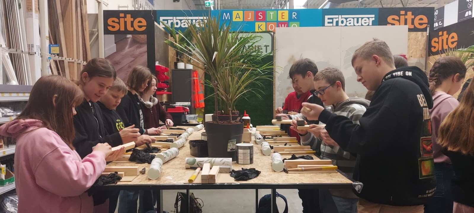 17 stycznia 2026 r. uczniowie Szkolnego Koła PTTK wzięli udział w kreatywnych warsztatach w Castoramie, gdzie pod okiem specjalisty poznawali tajniki pracy rzemieślniczej. Głównym zadaniem było samodzielne wykonanie dekoracyjnego obrazu, co wymagało przejścia przez wszystkie etapy profesjonalnej obróbki drewna: szlifowanie, klejenie i tapetowanie, malowanie oraz montaż. Zajęcia były niezwykle ciekawe i dostarczyły uczestnikom mnóstwo satysfakcji. Każdy wrócił do domu z własnoręcznie wykonanym dziełem oraz nowym bagażem praktycznych umiejętności. To była świetna lekcja cierpliwości, precyzji i kreatywności! 😊