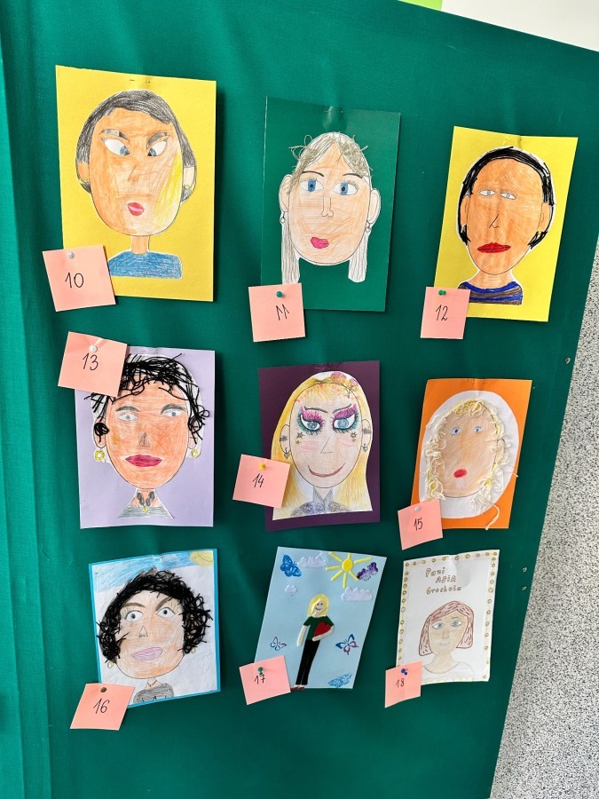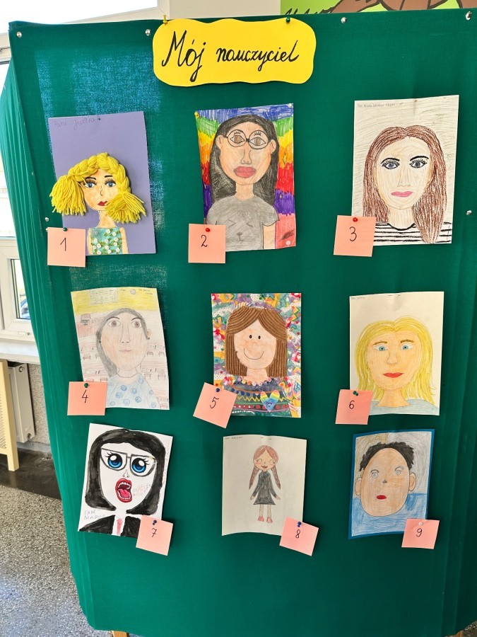 Uczniowie klas 1–5 wzięli udział w konkursie plastycznym „Mój nauczyciel”, w którym przedstawili swoich wychowawców i ulubionych nauczycieli w kreatywny, artystyczny sposób. Gratulujemy wszystkim uczestnikom pomysłowości i zaangażowania.
