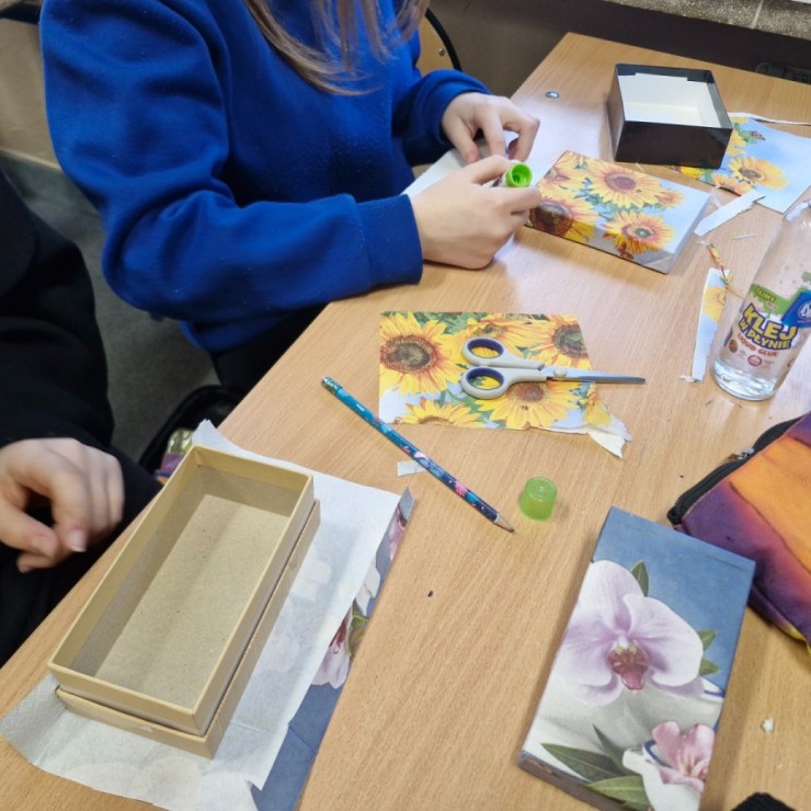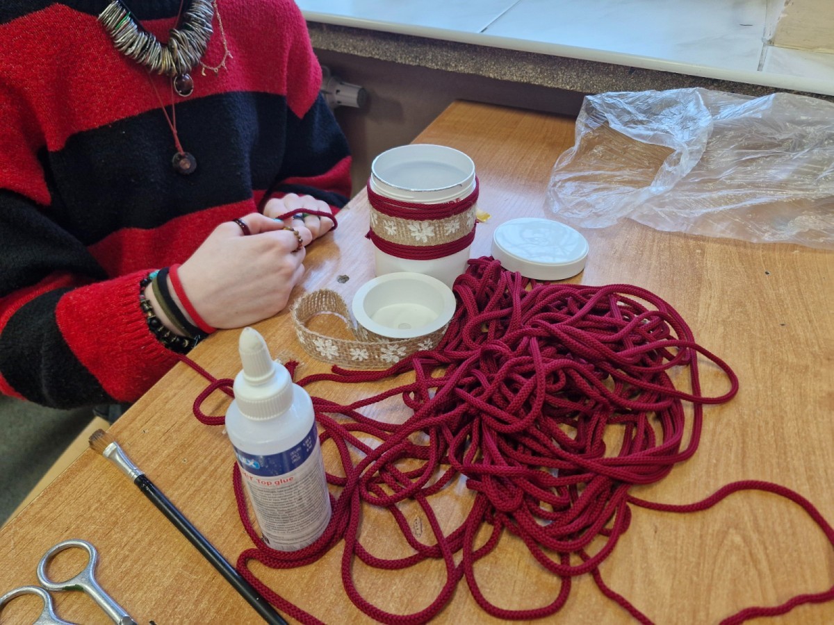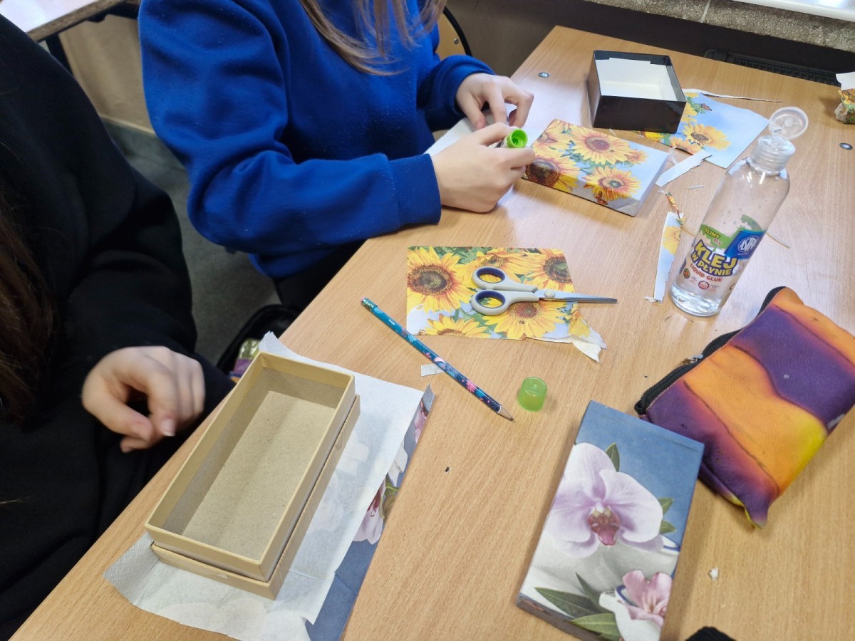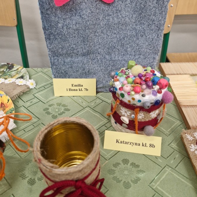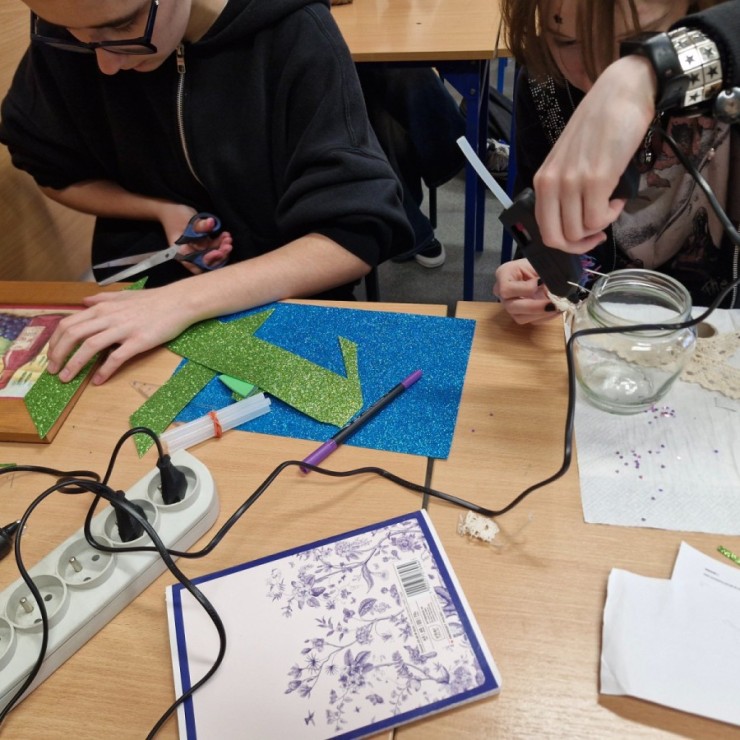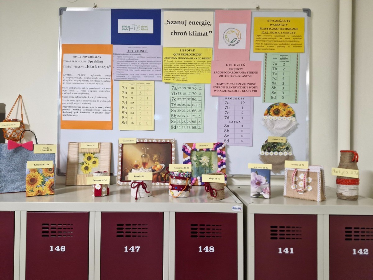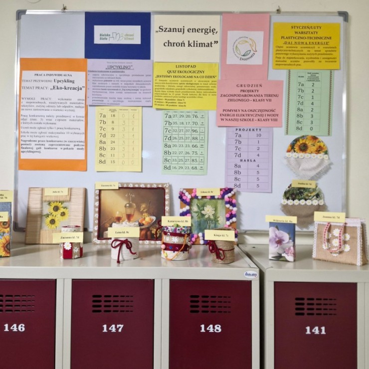 W styczniu i lutym w ramach konkursu „Szanuj energię, chroń klimat” uczniowie klas siódmych i ósmych zrealizowali działanie kreatywne. Na zorganizowanych przez koordynatora warsztatach plastyczno-technicznych uczniowie wykonywali prace nt. sposobów ponownego wykorzystania zużytych przedmiotów.