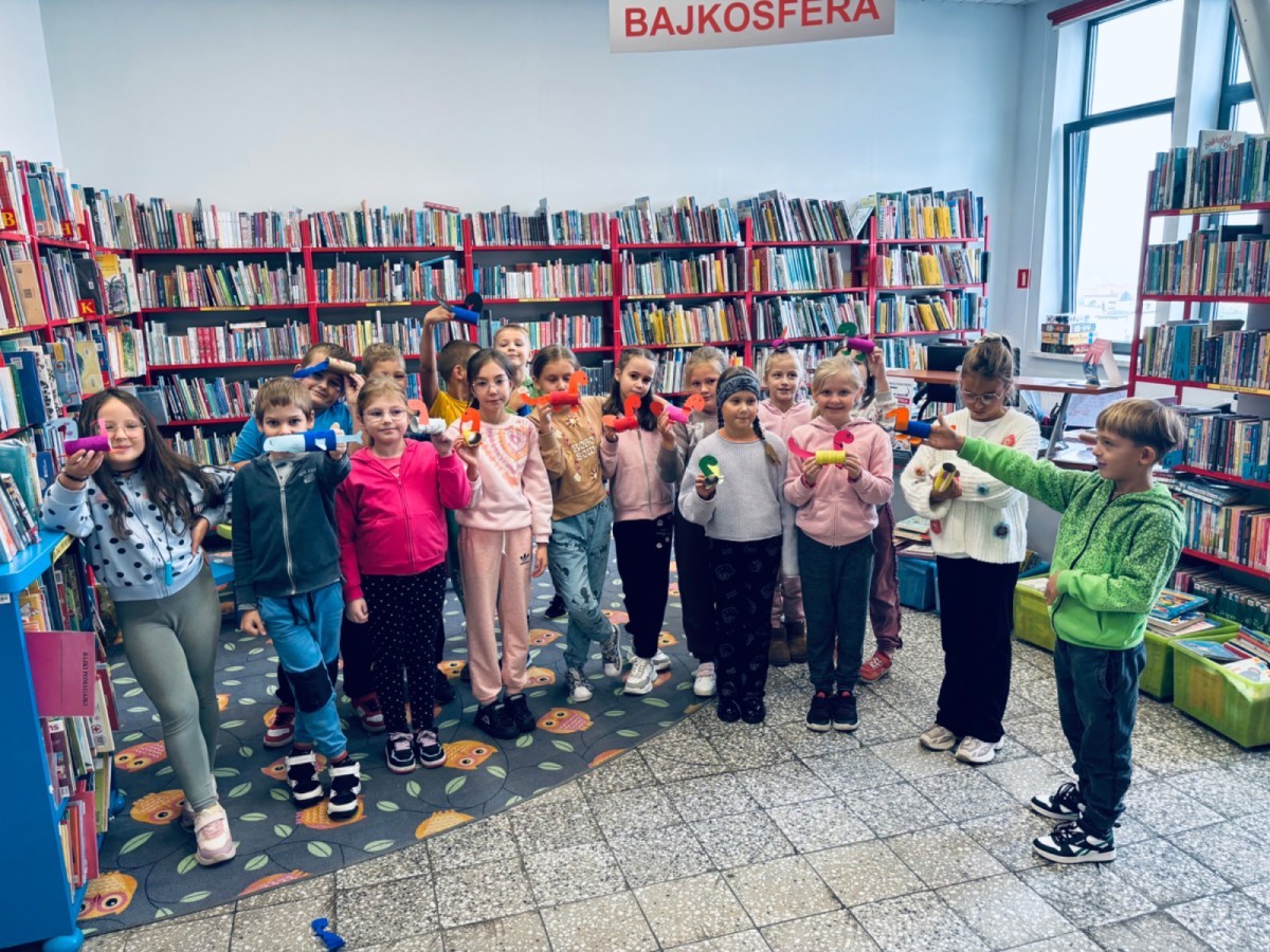 Uczniowie klasy 2a wybrali się do Biblioteki, gdzie wzięli udział w niezwykle ciekawych zajęciach o dinozaurach. Najpierw wysłuchali prelekcji, dzięki której poznali wiele fascynujących faktów o życiu tych prehistorycznych stworzeń. Następnie każdy mógł wykonać własnego dinozaura na pamiątkę spotkania. Dużą atrakcją było także odkopywanie „skamielin”, które pozwoliło dzieciom poczuć się jak prawdziwi paleontolodzy. To była wspaniała i pouczająca przygoda🦖🦕