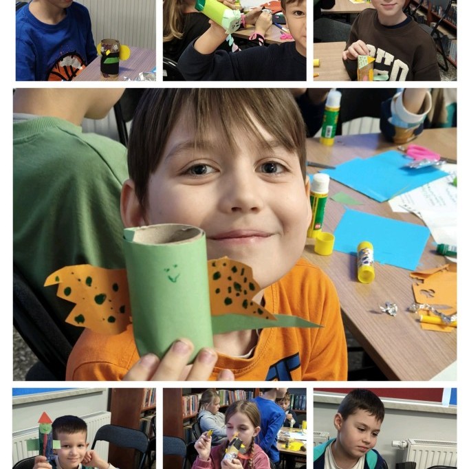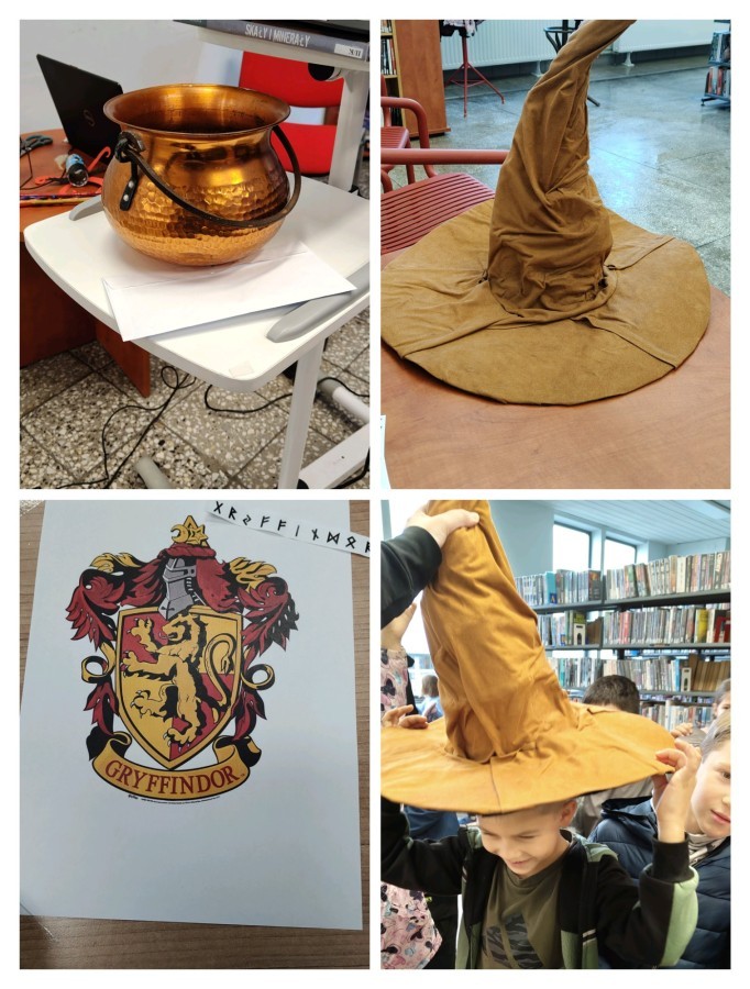 Podczas dzisiejszych zajęć w osiedlowej bibliotece Złote Łany uczniowie klasy 2 c przenieśli się do magicznego świata Harrego Pottera. Poznali wybrane zaklęcia, ich znaczenie oraz sposób użycia w książkach J.K. Rowling. Dzieci miały okazję stworzyć własne magiczne stworzenia, poćwiczyć wypowiadanie czarodziejskich formuł i stworzyć autorskie eliksiry. Zajęcia przebiegły w radosnej, twórczej atmosferze.