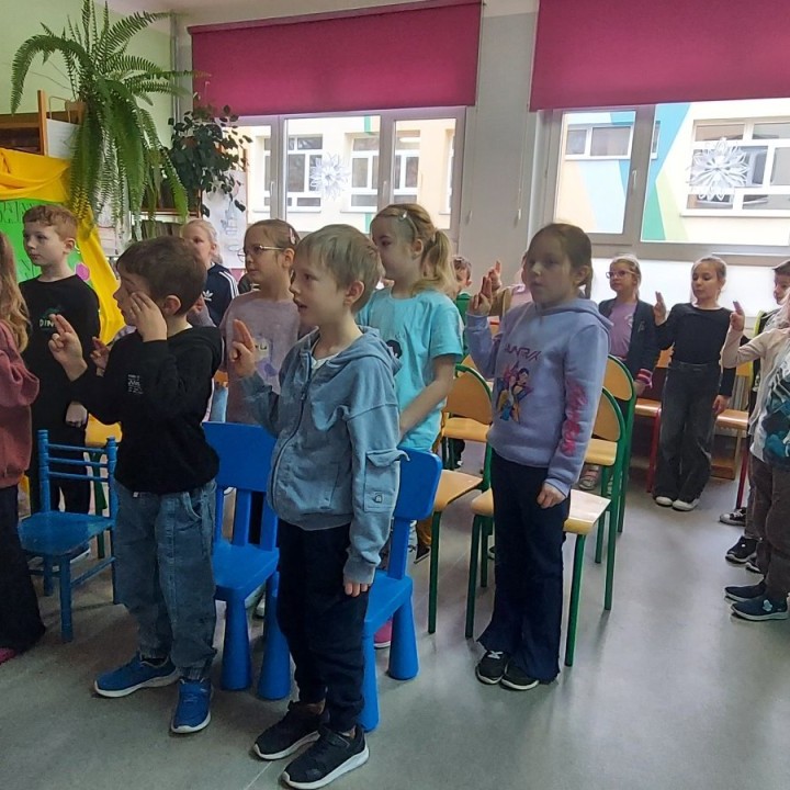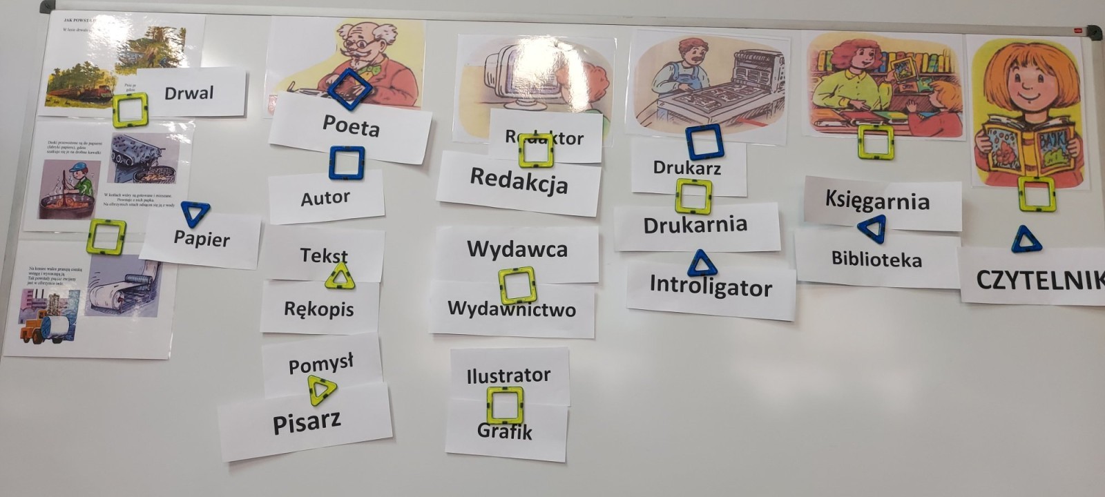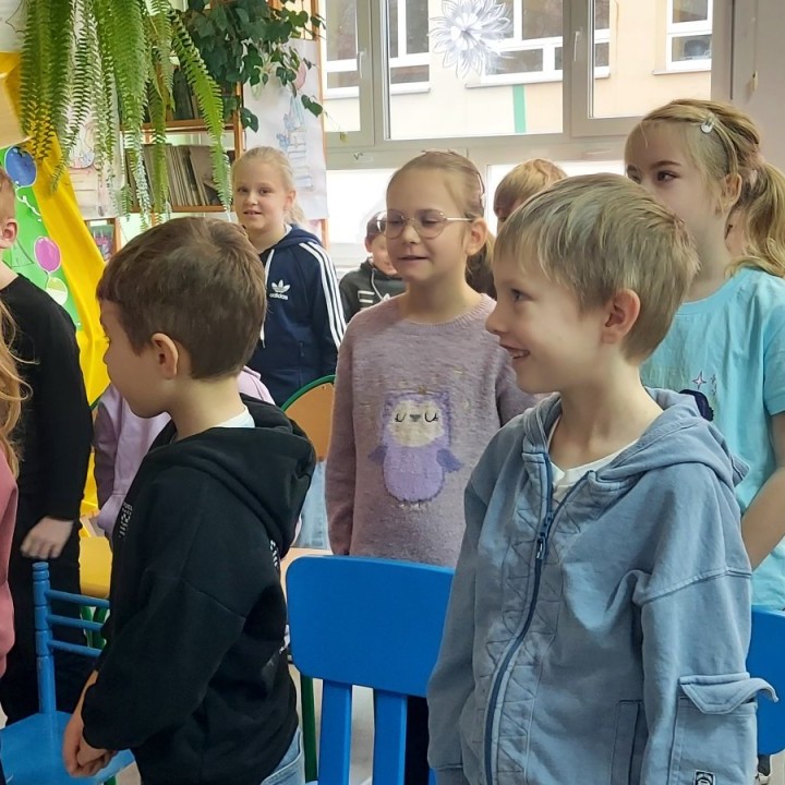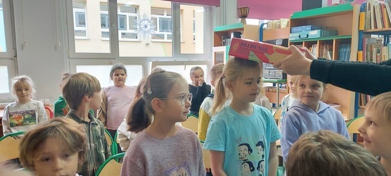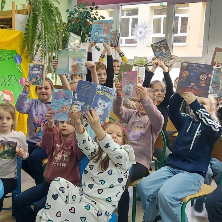 Spotkanie rozpoczęło się od lekcji bibliotecznej, podczas której pierwszoklasiści dowiedzieli się, jak powstaje książka – od pomysłu autora, przez pracę ilustratora i drukarza, aż po gotowy egzemplarz na półce. Nauczyciel biblioteka wyjaśnili również, jak należy szanować wypożyczone książki, podkreślając zasady dbania o okładki, strony i terminowy zwrot.