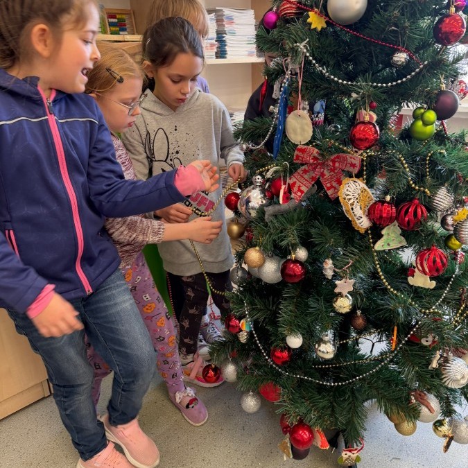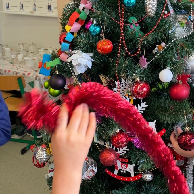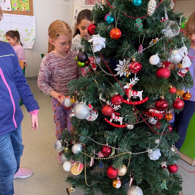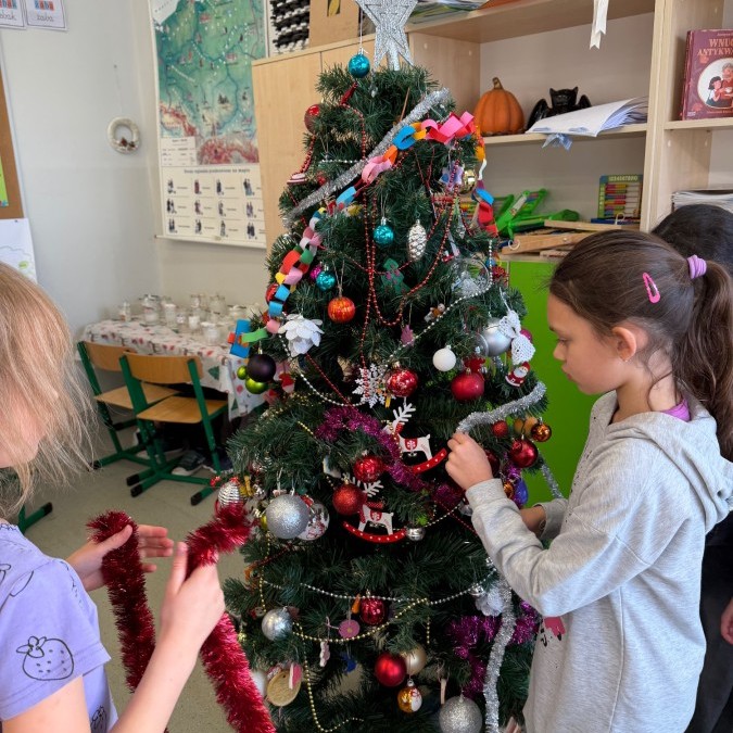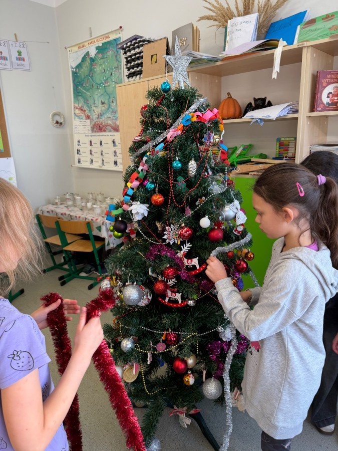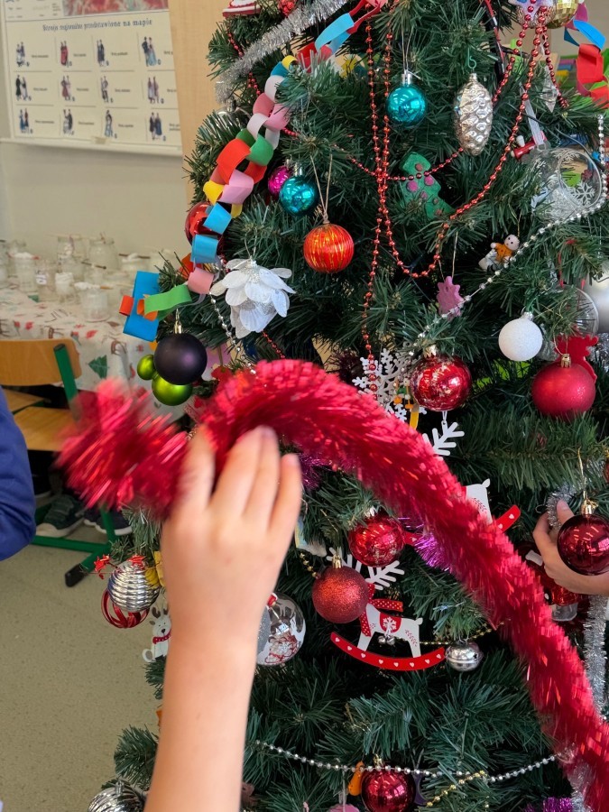W klasie zapanował prawdziwie świąteczny nastrój! 🎄✨ Uczniowie wspólnie ubrali choinkę, ozdabiając ją własnoręcznie przygotowanymi dekoracjami. Dzieci z radością współpracowały, dzieląc się pomysłami i dbając o każdy szczegół. Dzięki ich zaangażowaniu nasza klasowa choinka wygląda wyjątkowo i wprowadza wszystkich w magiczny, przedświąteczny klimat.