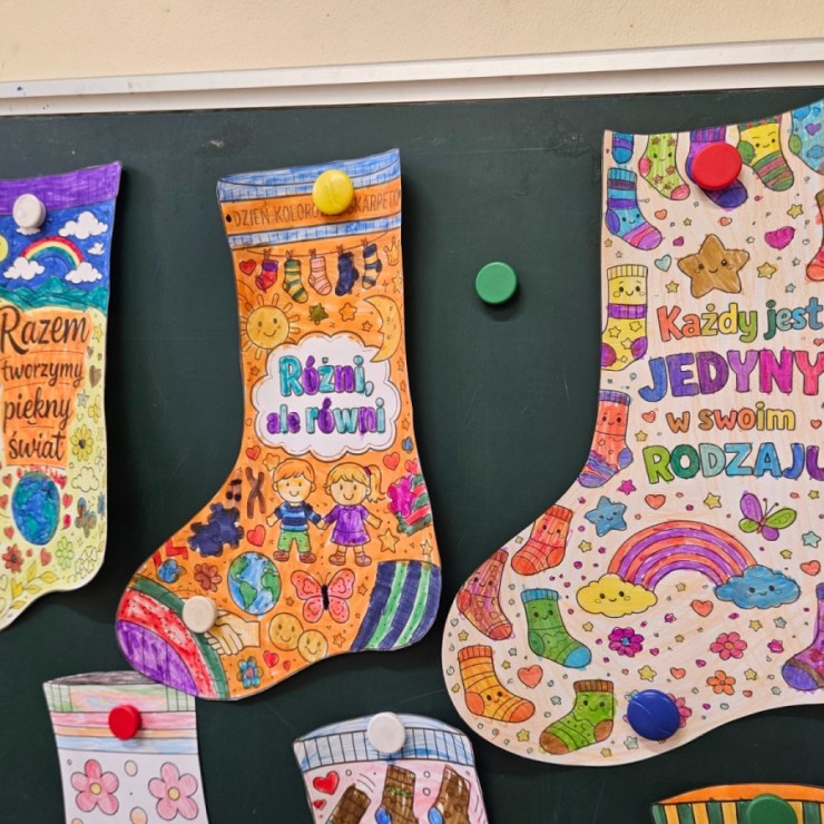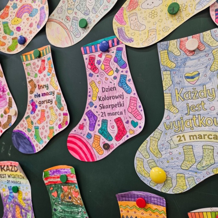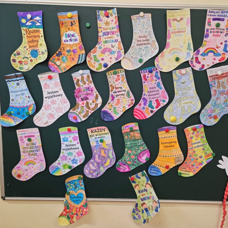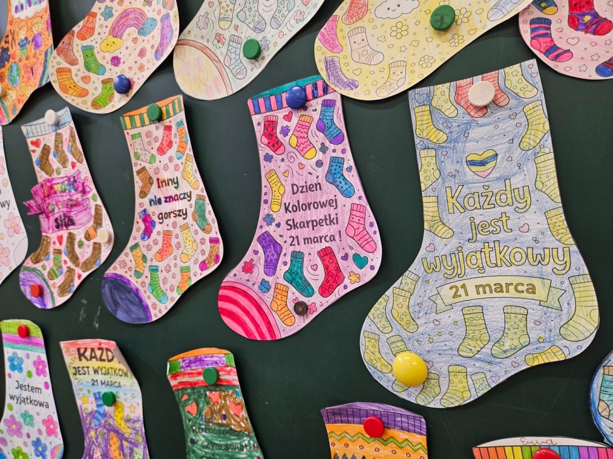 Z tej okazji uczniowie naszej szkoły włączyli się w obchody tego wyjątkowego dnia, zakładając skarpetki nie do pary. Ten symboliczny gest ma na celu podkreślenie różnorodności oraz pokazanie, że każdy z nas jest inny, a jednocześnie równie ważny i wartościowy.
