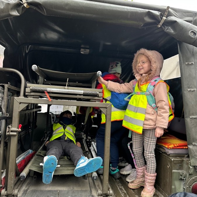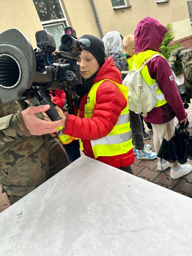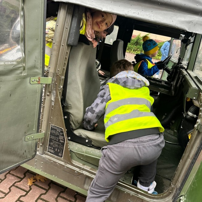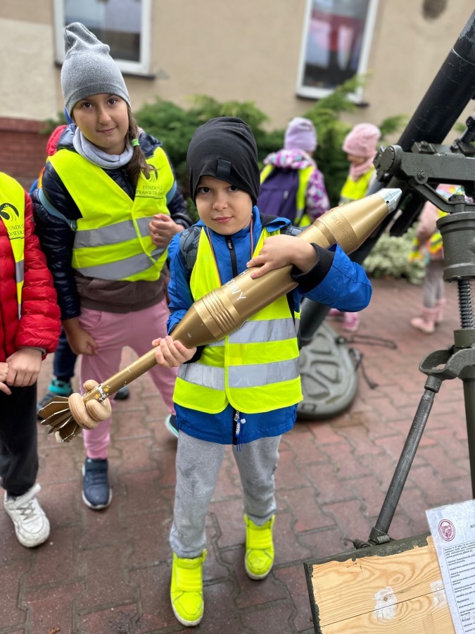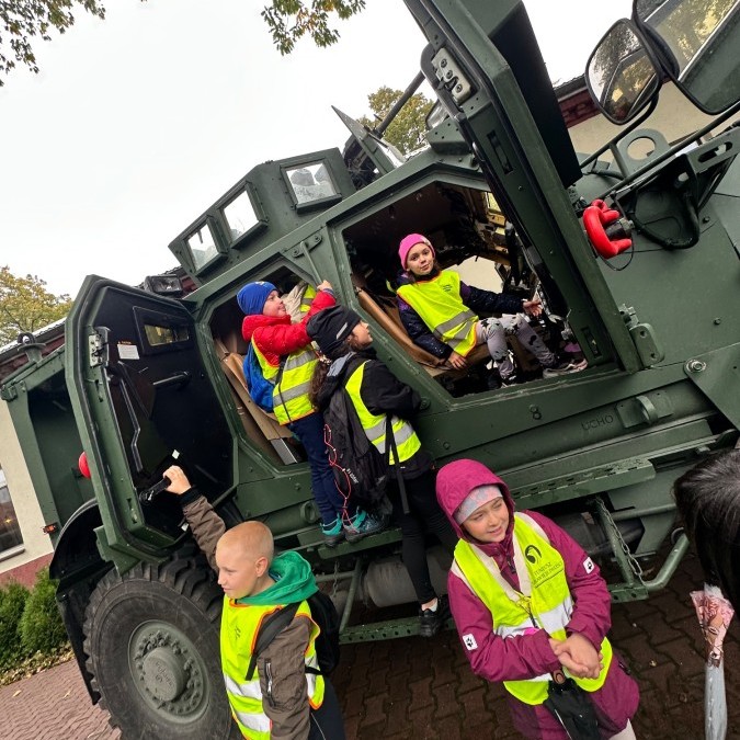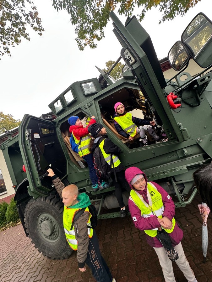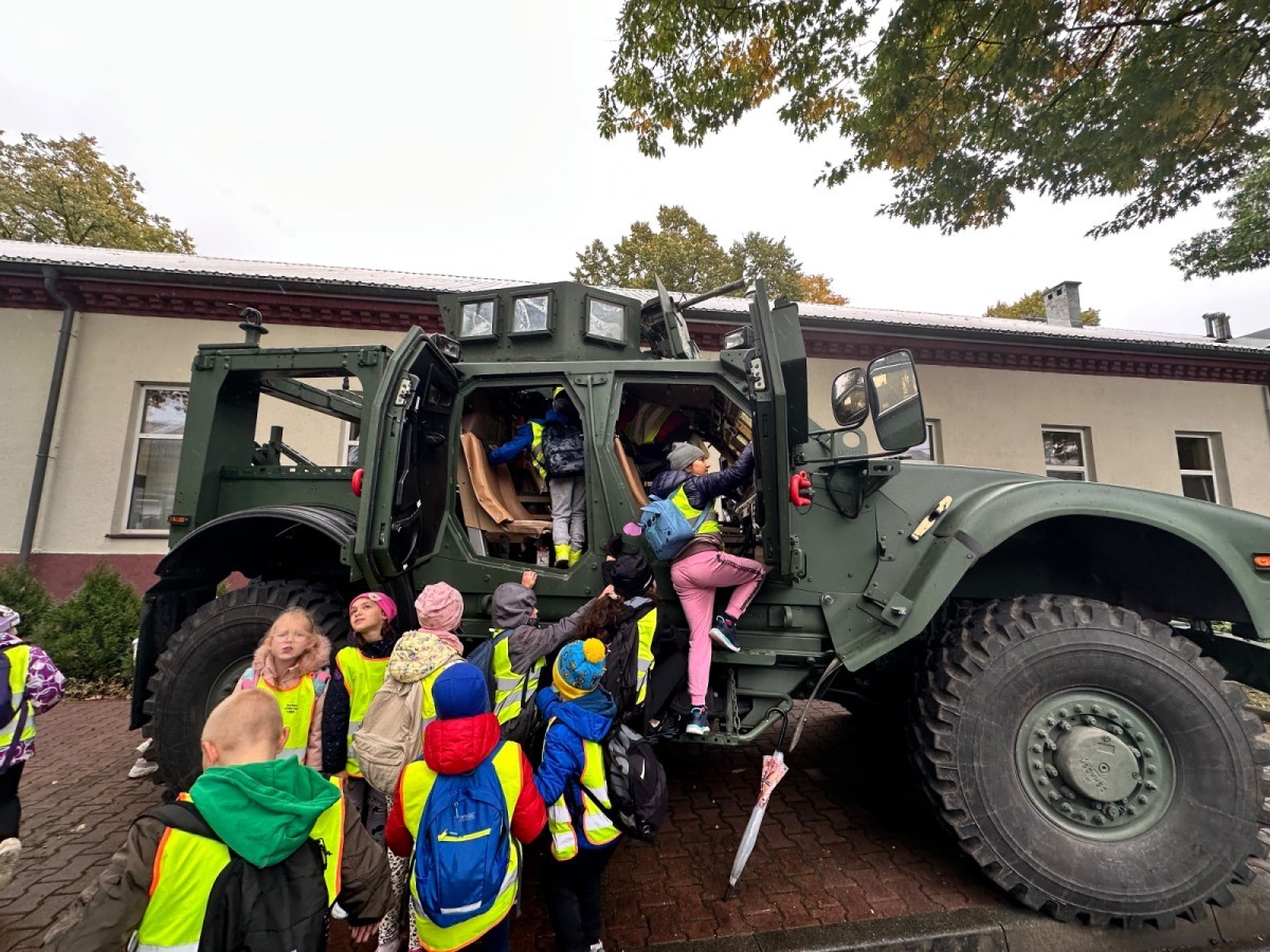 10 października 2025 roku uczniowie klasy 2B mieli niezwykłą okazję odwiedzić 18. Bielski Batalion Powietrznodesantowy w Bielsku-Białej. Podczas dni otwartych dzieci mogły zobaczyć z bliska, jak wygląda służba w wojsku, poznać wyposażenie żołnierzy oraz dowiedzieć się, jak ważną rolę odgrywają wojska powietrznodesantowe w obronie naszego kraju. Spotkanie z żołnierzami było pełne emocji, uśmiechów i ciekawych rozmów.
